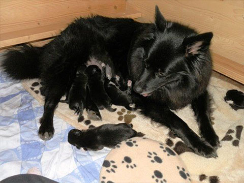 Am 22.09.2014 kamen in Merkendorf bei Nürnberg sieben schwarze Großspitze auf die Welt, die lauter lustige weiße Pfoten besitzen, denn ihre Mama, die schwarze Großspitzin Flora hatte sich einen weißen Großspitz als Bräutigam ausgesucht.