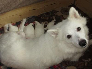 In der Nähe von Leipzig bei Gisela und Herbert Schunke hat Diva von Wölkau am 08.09.2014 vier weiße Großspitzmädels zur Welt gebracht. Alle gesund und munter mit sehr guten Geburtsgewichten zwischen 292g und 355 g. Vater der 4 Hündinnen ist Erik z Osecsky'ch haju, ein tschechischer Rüde aus der Zucht von Jirina Jezkova.