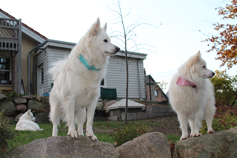 Ich lebe zusammen mit meinem Mann und drei weißen Großspitzen in Warin, eine Kleinstadt zwischen Schwerin und Wismar.